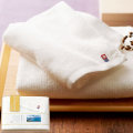 清らかな白なみのように美しい、純白の今治タオル。凹凸感のある独特な風合いが心地よいあぜ織りに仕立てました。高級感のある木箱に丁寧に詰め合わせ大切な方へお贈りいたします。