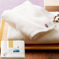 清らかな白なみのように美しい、純白の今治タオル。凹凸感のある独特な風合いが心地よいあぜ織りに仕立てました。高級感のある木箱に丁寧に詰め合わせ大切な方へお贈りいたします。