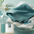 澄み渡るような色づくりと甘撚りのコーマ糸で織り上げた、ふんわり心地の泉州タオルです。水色はすっきりと洗練された感性豊かな色といわれており、水を大切にする泉州タオルをあらわすかのような澄み渡る色づくりにこだわりました。