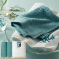 澄み渡るような色づくりと甘撚りのコーマ糸で織り上げた、ふんわり心地の泉州タオルです。水色はすっきりと洗練された感性豊かな色といわれており、水を大切にする泉州タオルをあらわすかのような澄み渡る色づくりにこだわりました。