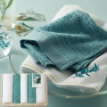澄み渡るような色づくりと甘撚りのコーマ糸で織り上げた、ふんわり心地の泉州タオルです。水色はすっきりと洗練された感性豊かな色といわれており、水を大切にする泉州タオルをあらわすかのような澄み渡る色づくりにこだわりました。