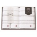 シックなグレーとやさしさを感じるベージュのボーダー柄の今治タオル。様々なライフシーンに寄り添うホームテキスタイルブランドです。