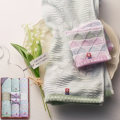 ころんとした形がかわいらしい「すずらん」と、すっきりと落ち着いた色合いの「さんかく模様」の今治タオル。