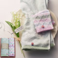 ころんとした形がかわいらしい「すずらん」と、すっきりと落ち着いた色合いの「さんかく模様」の今治タオル。