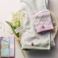 ころんとした形がかわいらしい「すずらん」と、すっきりと落ち着いた色合いの「さんかく模様」の今治タオル。