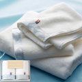 しっとりやわらかい真っ白なタオルは、一般的なタオルの糸より、撚りが少なくやわらかさのある「甘撚り(あまより)」の糸を使用しています。その糸でタオルを織るには、綿の質や織りの技術も必要になるのです。ふんわり軽やかでやさしい、スイートな肌触りをお楽しみください。