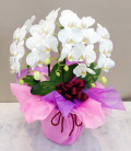[お花屋さんのひとこと] 新築祝い・開店祝い・引越し祝い・移転祝いなどにふさわしいホワイト胡蝶蘭です。