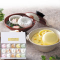見た目だけでなく食感も楽しめる最中の詰め合わせ。最中は国産100%の最中種から作られており、だしや野菜スープにも国内素材を使用。