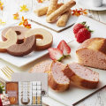 あまおう苺果汁100%を使用したパウンドケーキに、 一層一層丁寧に焼き上げた2種類のバウムクーヘンなどの詰め合わせをお楽しみください