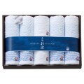 寄せては返す波のように、永遠への願いを込めて。 透き通るような青のグラデーションと白のコントラスト、打ち寄せる白波のように織られた波の模様が印象的な今治タオルです。