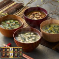 【内容】たまごスープ6.4g、とうふと油揚げのおみそ汁、2種のきのこの赤だしおみそ汁、あおさとわかめのおみそ汁、オクラ入ねばねば野菜スープ×各2