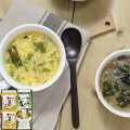 ヘルシーで人気のスープ春雨とたまごスープのセット。お湯を注ぐだけで簡単にお召し上がりいただけます。国産たまごを使用し、フリーズドライ製法で仕上げたたまごスープ、2種類のスープ春雨は、鶏ガラをベースに、鶏の旨味と香味野菜の風味がきいたあっさり醤油味のわかめ醤油味、オニオンとキャベツを使った野菜が美味しい野菜スープ味を、ご用意いたしました。