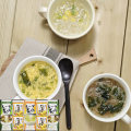 ヘルシーで人気のスープ春雨とたまごスープのセット。お湯を注ぐだけで簡単にお召し上がりいただけます。国産たまごを使用し、フリーズドライ製法で仕上げたたまごスープ、2種類のスープ春雨は、鶏ガラをベースに、鶏の旨味と香味野菜の風味がきいたあっさり醤油味のわかめ醤油味、オニオンとキャベツを使った野菜が美味しい野菜スープ味を、ご用意いたしました。