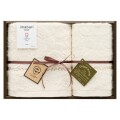 無漂白・無染色の綿糸を使いボーダー部分にはカラードコットンを使用し今治で丁寧に織り上げた環境に優しいエコマーク取得のエコタオルです。