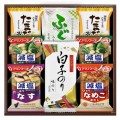 【内容】白子のり味のり(8切5枚)、ふぐ入お吸い物3.2g、アマノフーズ減塩いつものおみそ汁なす9.0g、アマノフーズ減塩いつものおみそ汁なめこ8.0g、アマノフーズ減塩いつものおみそ汁ほうれん草6.8g×2、たまごスープ6.4g×2