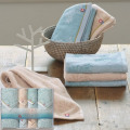 今治の豊富な軟水で晒しや染めを行うことで生まれる繊細で柔らかな風合いと、しまなみの海と自然を表したような美しい色あいが魅力のタオルです。