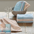 今治の豊富な軟水で晒しや染めを行うことで生まれる繊細で柔らかな風合いと、しまなみの海と自然を表したような美しい色あいが魅力のタオルです。