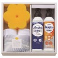 ナノ洗浄で油汚れもサラサラ! 食器洗いが手早く片づく食器用洗剤ギフト。ナノ洗浄でベタつく油汚れもサラサラ落とす食器用洗剤・チャーミーマジカと、今治タオルやマイクロファイバークロスがセットになった、役立つキッチン洗剤ギフトです。