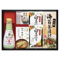 【内容】キッコーマン塩分ひかえめ丸大豆生しょうゆ200ml、マルトモかつおパック(0.7g×3)、かね七かつおだし(4g×5)、海苔茶漬け(6.0g×5)、白子のり味のり(8切5枚)×2