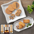 さくさくしたキャラメル味のクッキーでレーズンが練りこまれたクリームをやさしくサンドしました。マカダミアナッツとぺカンナッツ、チョコチップをたっぷり入れて、ざっくりとした食感に焼き上げたざっくりクッキーと上品な味わいに仕上げたチョコゴーフレットの詰め合わせです。