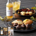 【内容】フルーツドリンク(アップル)180ml、キャラメルレーズンサンド×3、マドレーヌ(プレーン)、プチフィナンシェ(ショコラ)6個入、プチフィナンシェ(プレーン)6個入、チョコとクランベリーのタルト