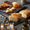 【内容】アーモンドパウンドケーキ、マドレーヌ(プレーン)×4、チョコとクランベリーのタルト、レモンとオレンジのタルト、プチフィナンシェ(ショコラ)6個入、プチフィナンシェ(プレーン)6個入
