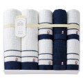 ネイビーとホワイトのコントラストが美しい品格あふれるギフトセット。ノーブルな紺色と白色のコントラストが美しい、高級感のあるタオルです。フォーマルでも映えるシックでモダンなデザインが自慢です。
