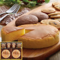高級感があるホール型でキメ細かな生地が特徴のあっさりとした味わいでしっとりふわふわなチーズケーキと、程よい甘さのソフトチョコケーキやサクサクした食感の一口サイズのクッキー、チョコチップとアーモンドスライスを練り込んだチョコチップクッキーなどを詰め合わせました。