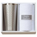 飲み頃温度をキープするタンブラーと高品質今治タオルのセット。タンブラーは真空断熱二重構造のため飲み頃の温度がキープされます。冷たいものを入れても結露せず、温かいものを入れても本体外側が熱くなりません。吸水性にすぐれた今治タオルとセットしました。