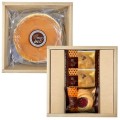 高級感があるホール型でキメ細かな生地が特徴のあっさりとした味わいでしっとりふわふわなチーズケーキと、ロシアケーキやチョコチップをたっぷり入れて、ざっくりとした食感に焼き上げたざっくりクッキーなどを詰合せました