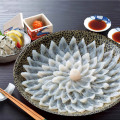 菊の花のように盛り付けられたとらふく刺身は皿の上に咲く花のようでまさに圧巻です。