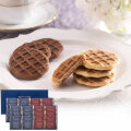 サクサク食感のワッフルクッキーにホワイトチョコクリームを詰めた風味豊かなショコラワッフルクッキーといちごチョコクリームを詰めたいちごワッフルクッキーの詰合せです。