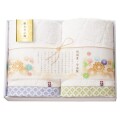 可愛らしい小紋柄がアクセントのふんわりタオル。日本の伝統・小紋柄とラメのラインでさりげなく彩られたシンプルなタオル。一見、白無地に見える面にも模様が施されており、和の美しさを伝えます。どんな場にも馴染むので使いやすいタオルです。