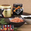 【内容】鮭ほぐし50g・紅ずわいがにほぐし身55g×各1、のり佃煮80g・かつおだし(4g×8)×各2